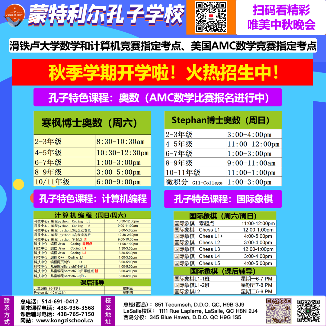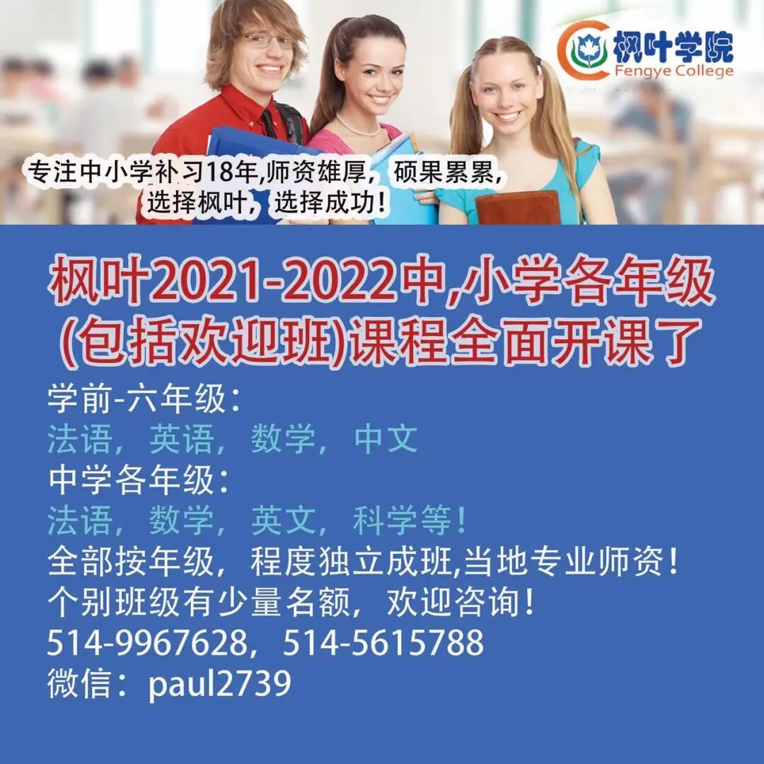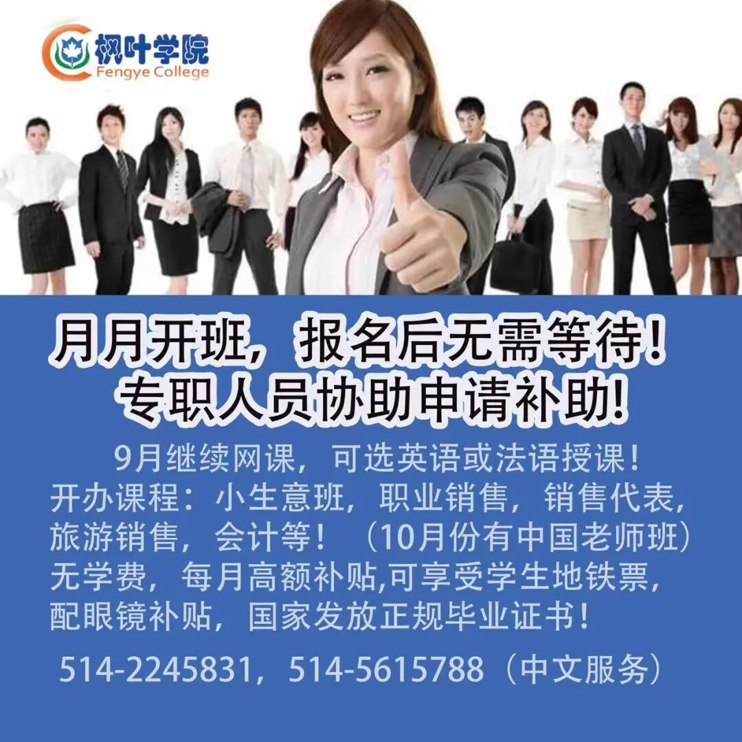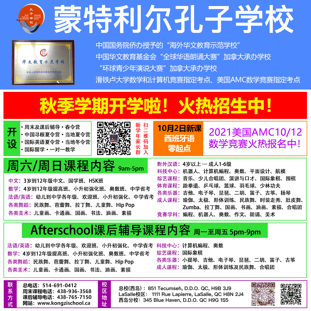 报名电话 :438-939-4011\514-638-0656\514-802-5518