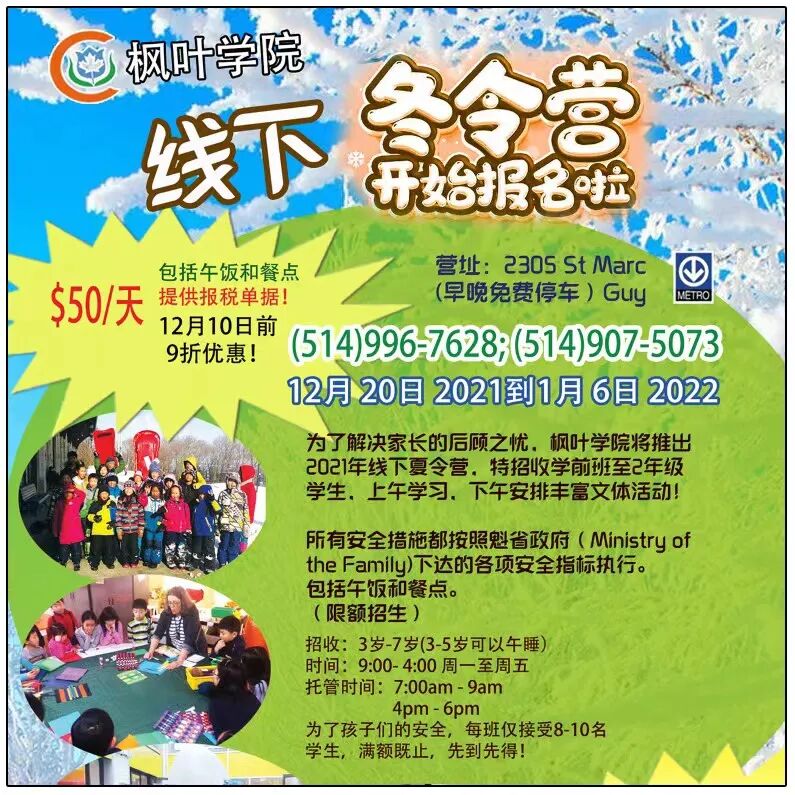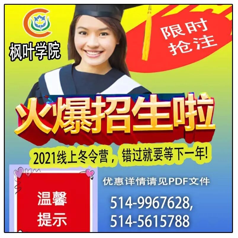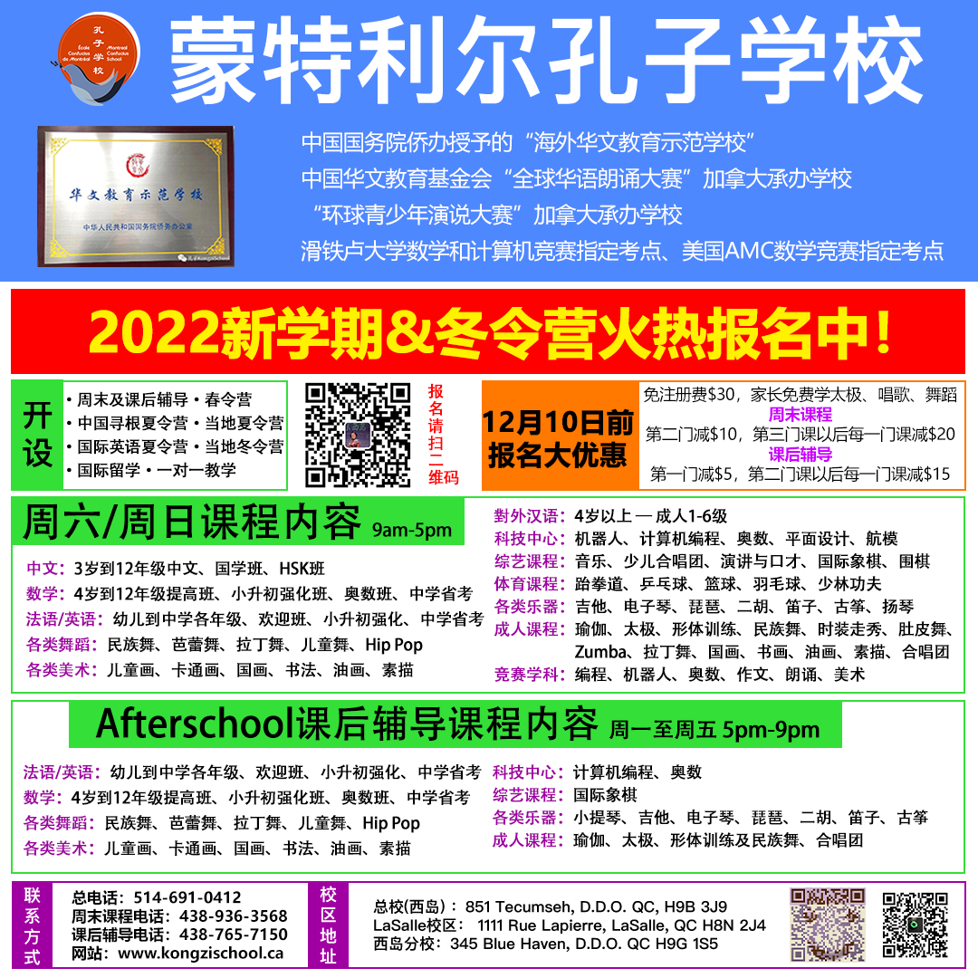 报名电话 :438-939-4011\514-638-0656\514-802-5518