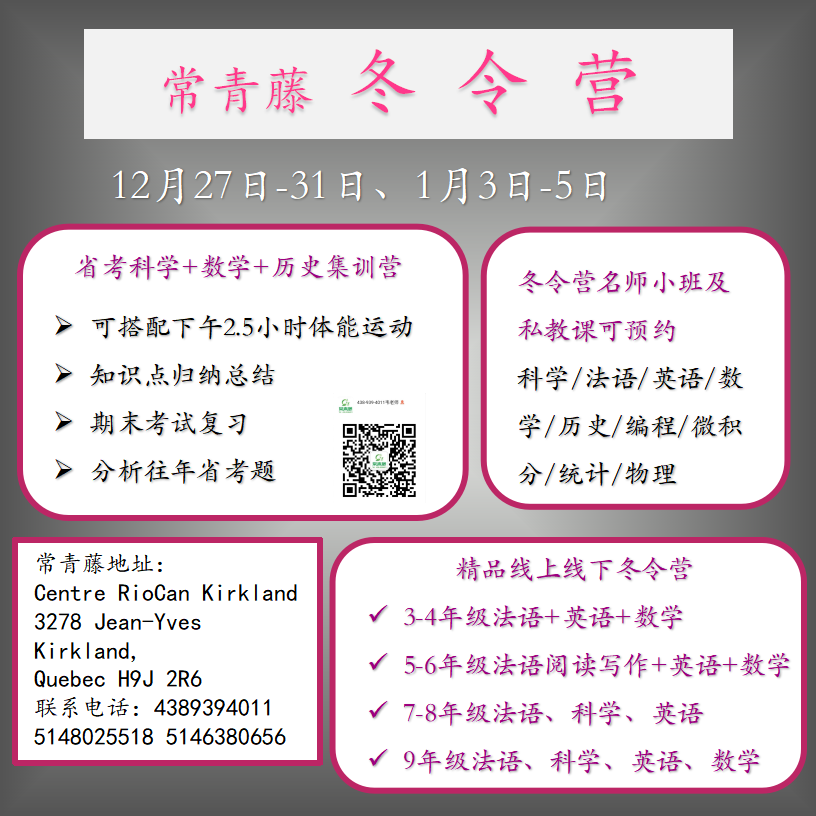常青藤教育专注于蒙特利尔及加拿大的中小学全科精品名师私教及小班线上及线下课程,组织各种赛事培养学生全方位的才能。 荟萃名校精英师资,紧扣学校教学要求,为您孩子学业全方位保驾护航!